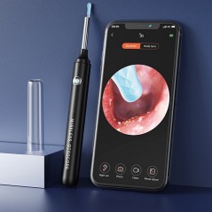 Otoskop to urządzenie medyczne do oglądania wnętrza ucha. Otoskop posiada kamerę i wyświetlacz, co pozwala na bezpieczne i dokładne czyszczenie uszu z woskowiny.